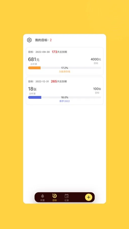 在你定下计划或目标后,你的计划执行情况或目标实现过程,每一次点滴付出,都可以在小积累中进行记录。