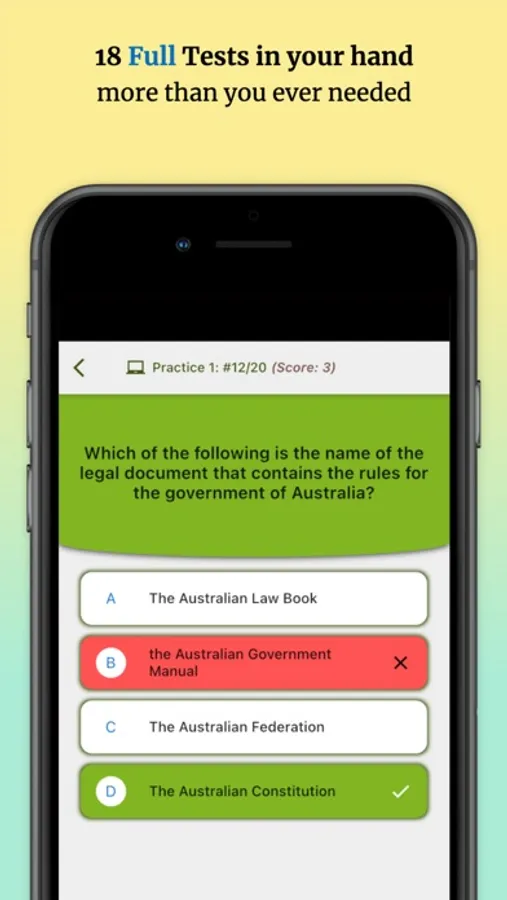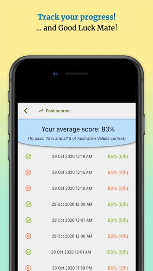 • Each Test has FIVE Australian value questions at the end - and you must have them all correct in order to pass!.