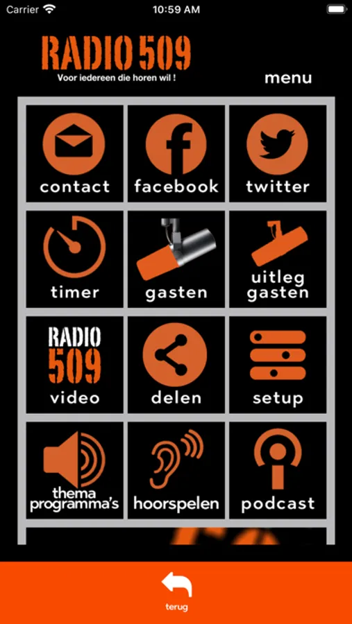 Radio509 - Non visual radio. Album tracks & Classics. 24/7 een volwassen muziekmix afgewisseld met korte reportages, interviews en eigen gemaakte radiodrama producties (hoorspelen). Terug luisteren kan via de app van Radio509. De meeste medewerkers van Radio509 zien weinig of helemaal niets, daardoor hebben ze een uitstekend goed getraind gehoor, een pluspunt bij de radio. Radio509 is gestart in maand nummer 5 van het jaar ’09 (12 mei 2009). Contactgegevens: studio@Radio509.nl en tel: 035 6856037.