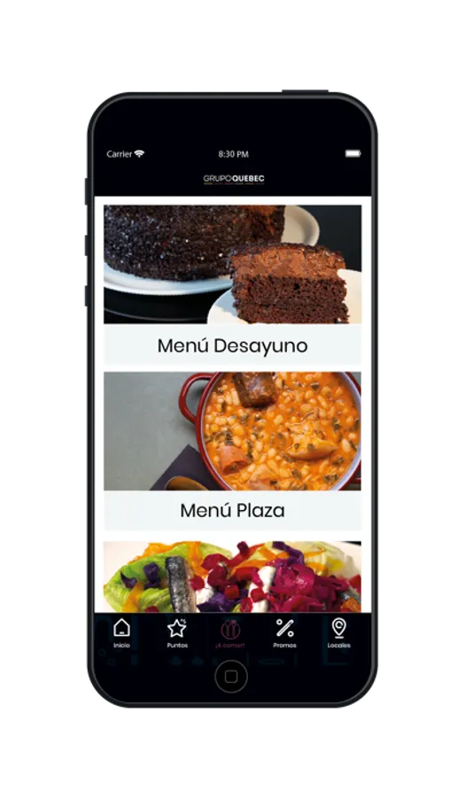 ¡Nueva App de Grupo Quebec! Ahora podrás pedir nuestros exquisitos platos de forma rápida y sencilla con tan solo unos pocos clicks y acumular puntos para tus próximos pedidos.