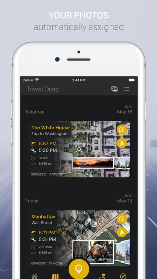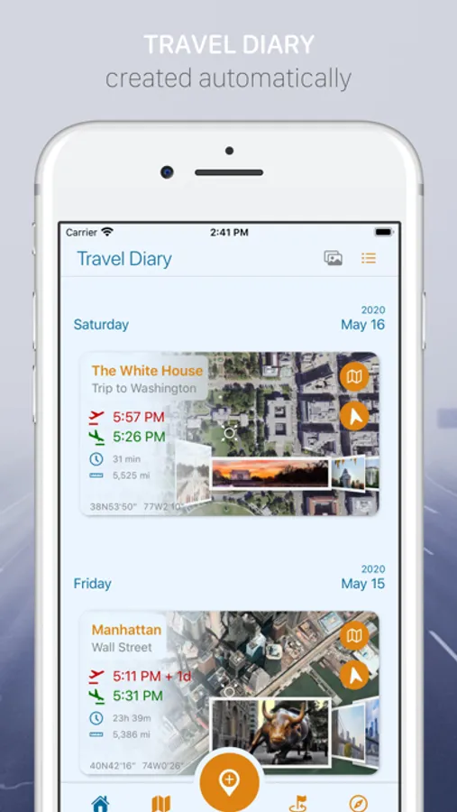 Well, Travel Diary offers you two ways to get to any place it shows you - regardless of whether it is a diary entry that was recorded for you in the background or a point of interest that you want in your area. Every location shown in the app has a button for a directional compass and for navigation.