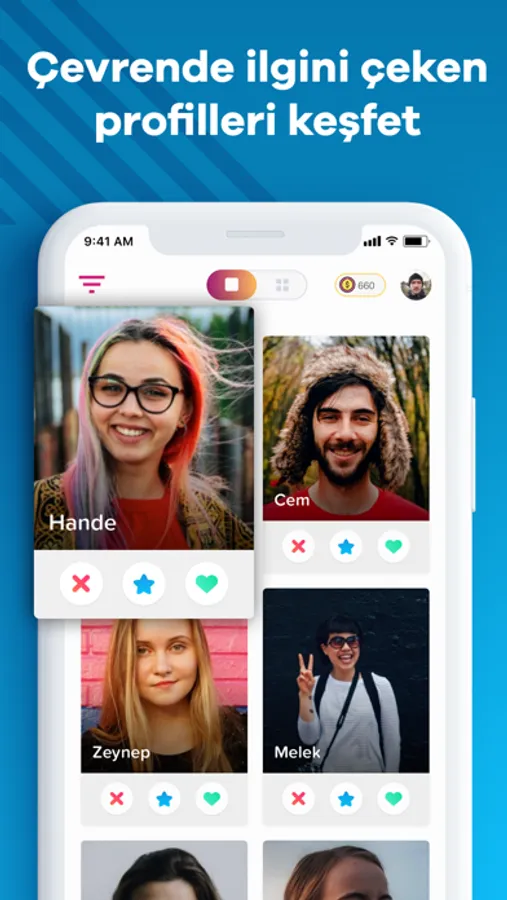 Check out your photos and profile near you, like it or skip it! If he likes it too, start texting right away!