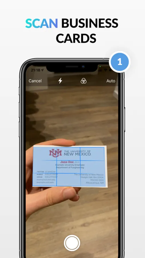 Fast & reliable scanning of conventional business cards