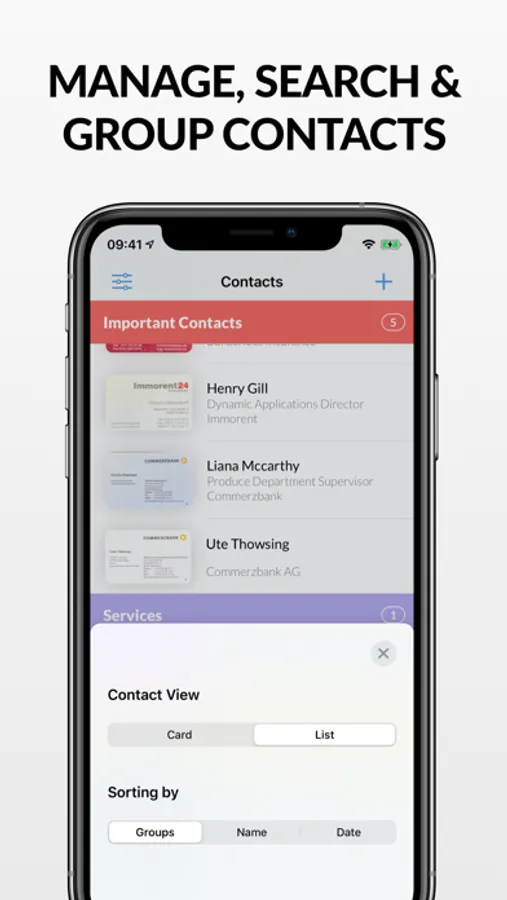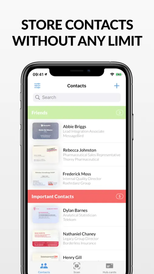With hub.cards, all your contacts are stored in our encrypted modern cloud, where you can access them at any time on any device. This way, you can group, sort, filter, and search your contacts on the way, in the office or at home.