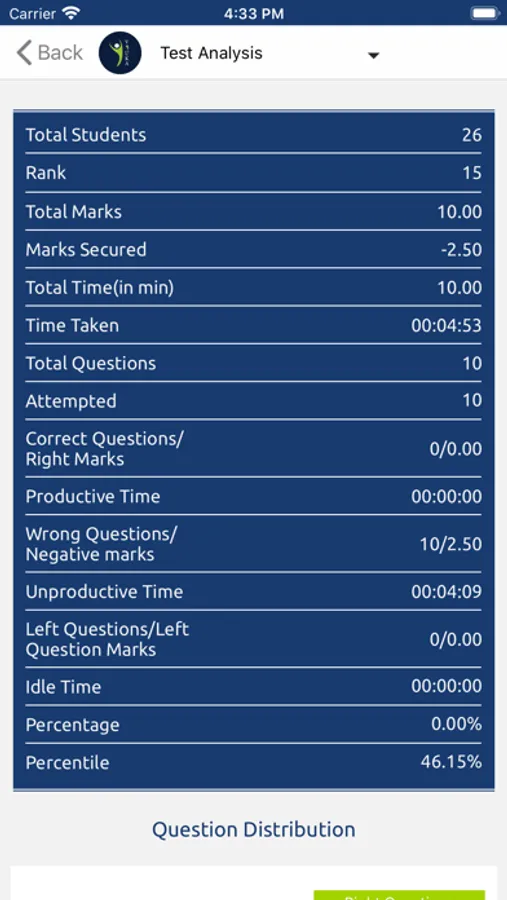 · Overall Students Performance Analysis with Ranking, Average Time taken per question etc. with graphical representation.