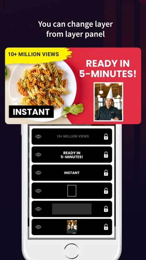 - You will see text, stickers, collage, and images in layer format so you can manage them easily.