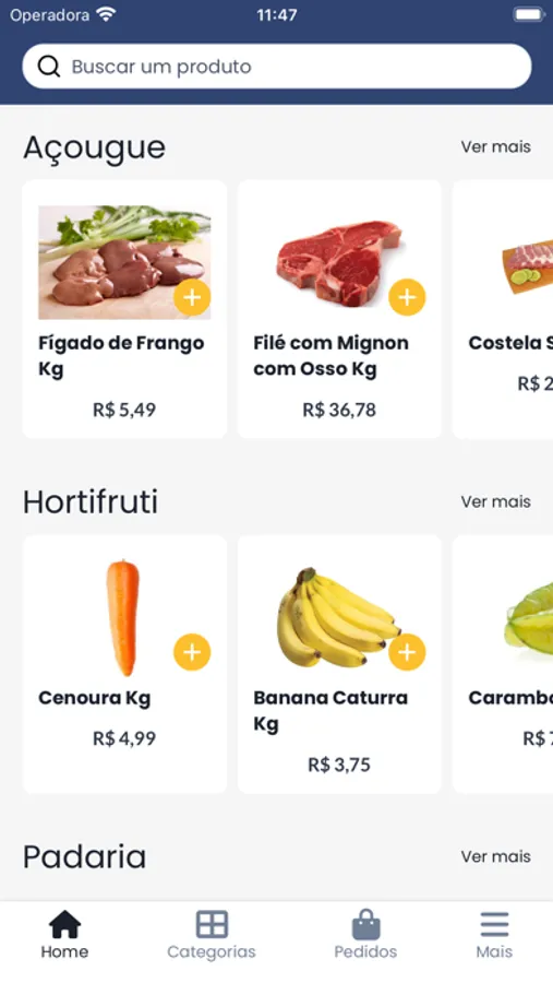 1 - Selecione os produtos: navegue pelas categorias e escolha os seus itens.