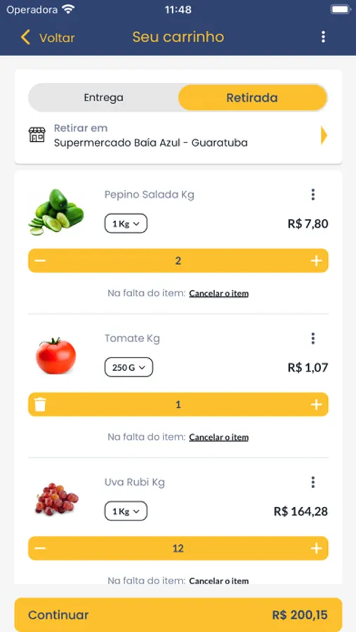Agora o cliente do Baía Azul Supermercados pode fazer suas compras pelo celular em qualquer horário e agendar a entrega das mercadorias.