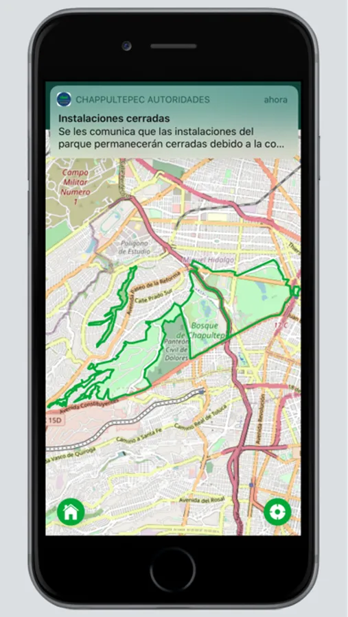 La aplicación permite comunicación entre usuarios que necesiten ayuda cuando se encuentren en el Bosque de Chapultepec, permite consultar la información de lugares y la ruta más óptima para llegar usando las vías del bosque.