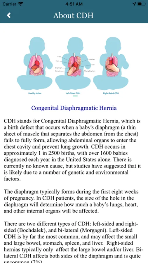 CDH is a birth defect that occurs when a baby's diaphragm fails to fully form, allowing abdominal organs into the chest cavity and preventing lung growth. Every 10 minutes a child with CDH is born or 1 in 2500 babies. The survival rate is 50% in High Income Countries and >1% in Lower Income Countries.