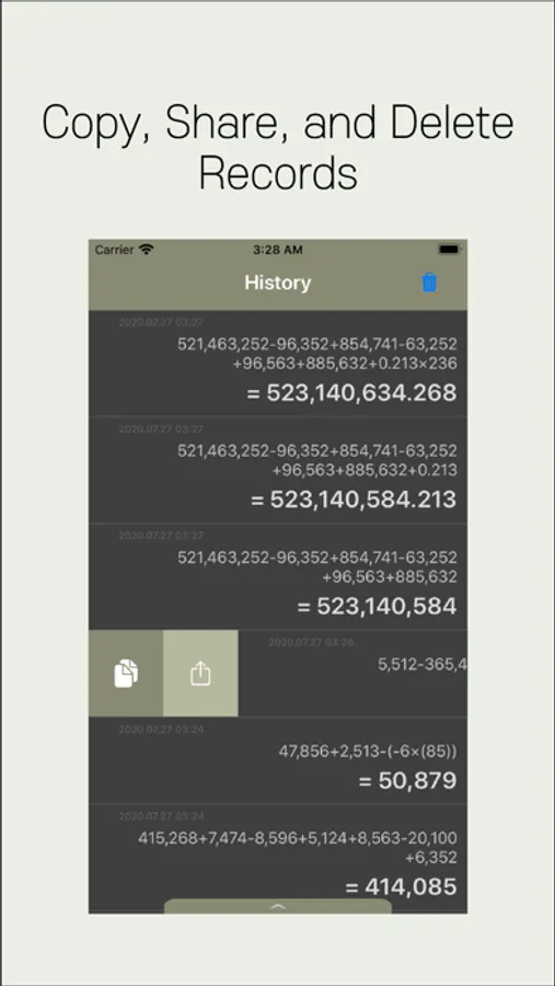 It has most features basic calculators may have, and it also shows you calculator and history table at the same time in landscape mode. By using it, you can see what the answers were and make use of them right there.