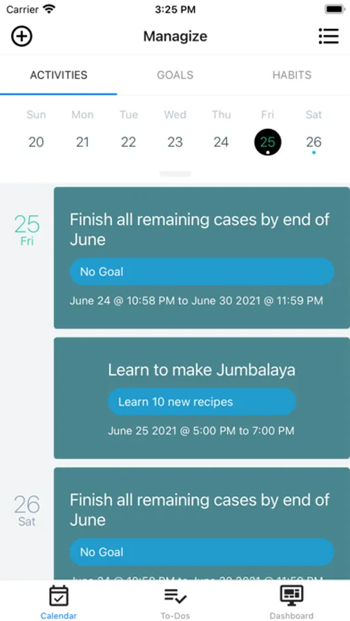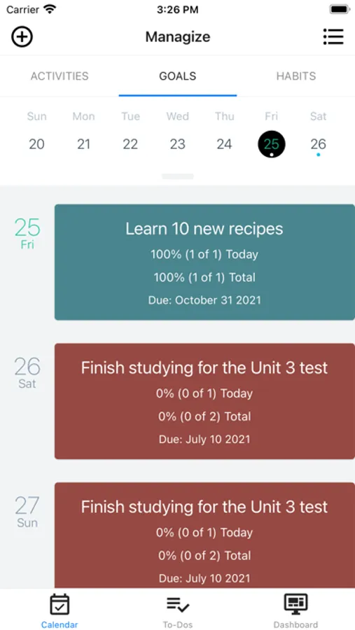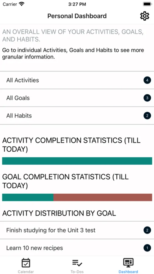Track your progress on goals, associated activities to your goals, get ongoing feedback on the distribution of your activities across goals, add notes to your goals, and manage to-dos across your goals.