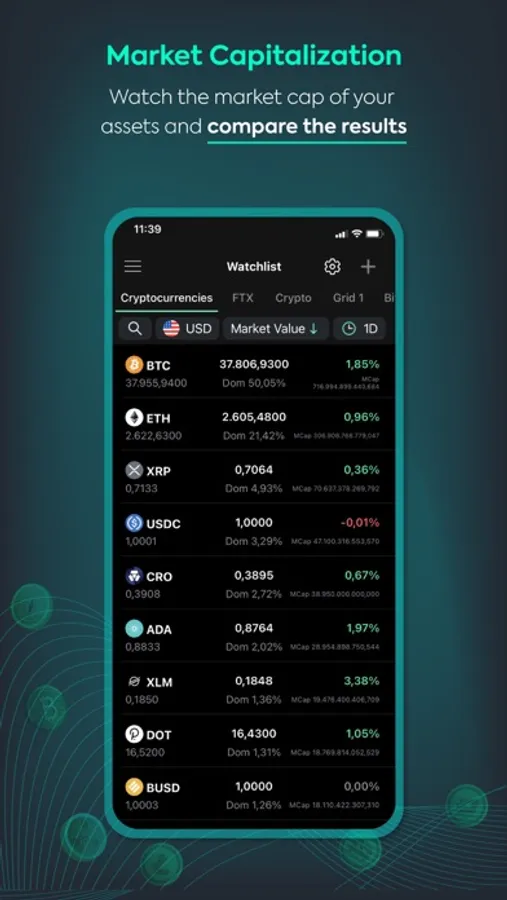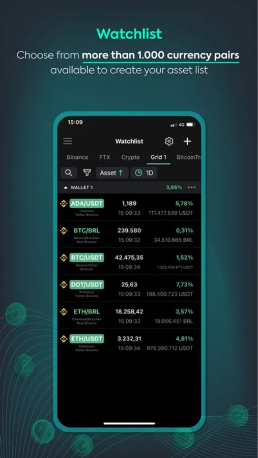 • Get a full list of cryptocurrency pairs available on the main exchanges, and stay up to date with the market capitalization of the main crypto assets.