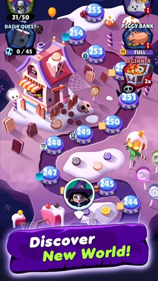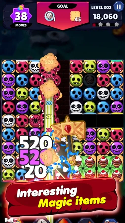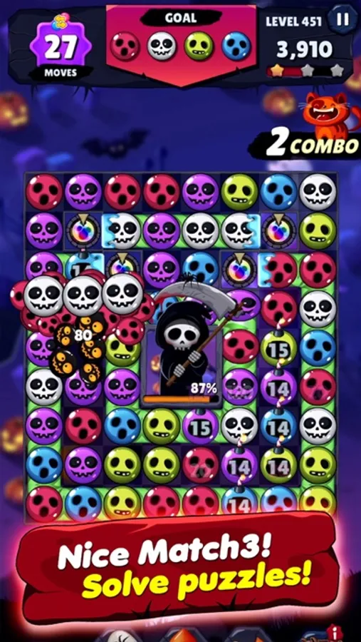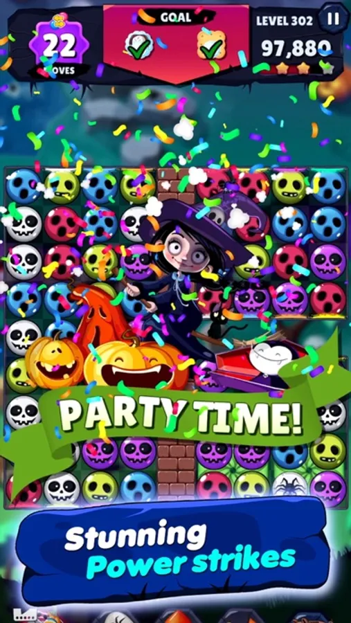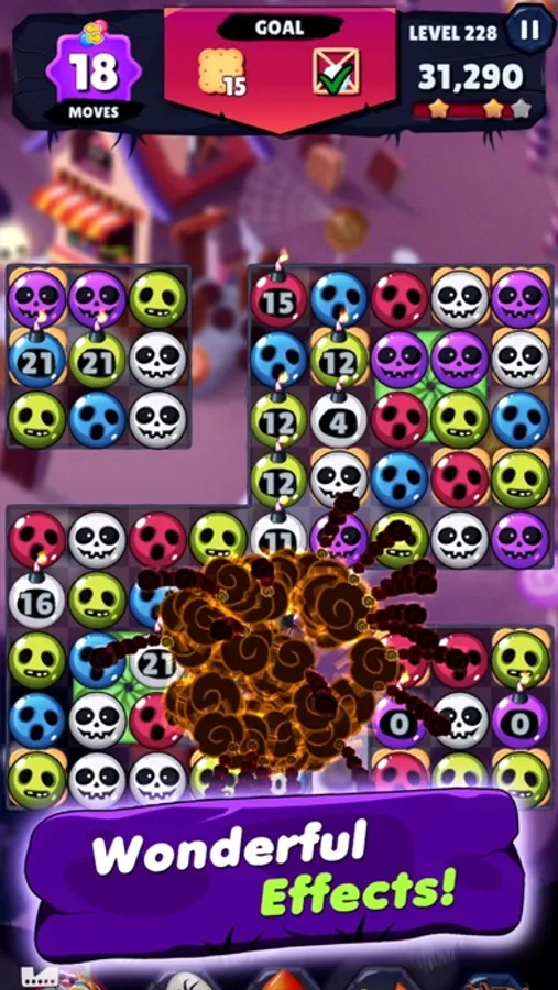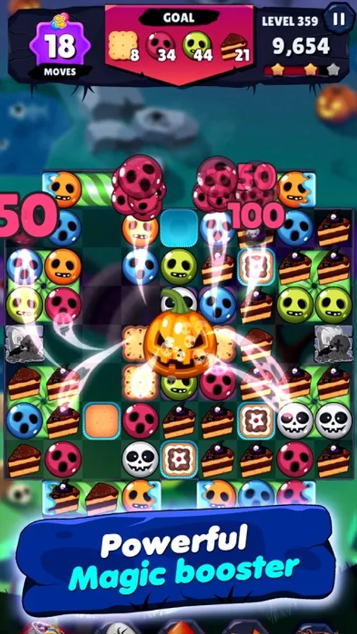 Move various sweet Halloween candies and arrange 3 or more candies of the same color.