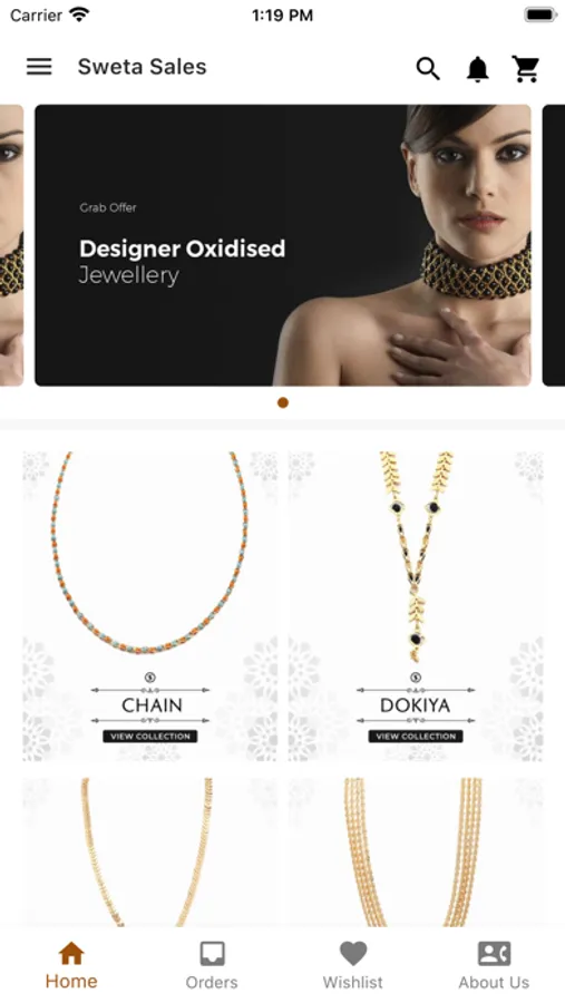 Sweta Sales is a leading imitation jewellery manufacturer and wholesaler in india. We brings beautiful and affordable imitation jewelry at your fingertips! Download our Sweta Sales Mobile App and enjoy your shopping. Always be connected with us for newly added collections and exclusive offers. We have wide range of collections like Chain, Aankh Chain, Golden Chain, Dokiya, Kidiya Fancy Dokiya, Golden Dokiya, Maala, Laxmi Maala, Aankh Amboj Maala, Har Set, Chapla Har etc.