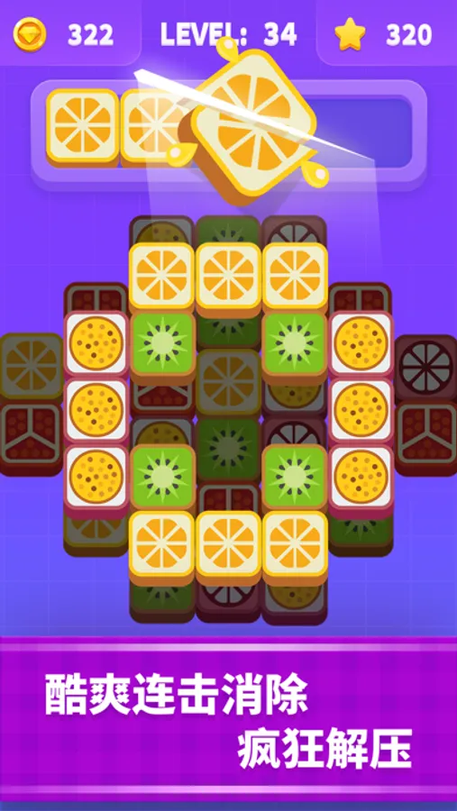 2.三个同样的水果方块在框内会自动被消除,每个关卡都有规定的时间,消耗时间越少,达成满星的机会就越大