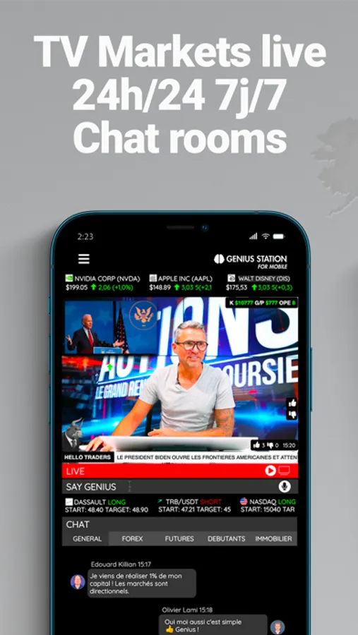 Genius is a professional, comprehensive trading platform that has a private TV to follow live the best traders in the markets. An artificial intelligence algorithm that detects and informs you of the most profitable market opportunities. A bracket programmable and / or 100% automatic trading system that sends transactions directly to your broker. The best performing stock market decision making tools are available in Genius. Multi-level discussion chat, real-time charts on stocks futures indices etfs forex currencies commodities and crypto currencies of European and international markets. The markets opinion to know the opinions of other traders on the markets. Global economic news and much more.