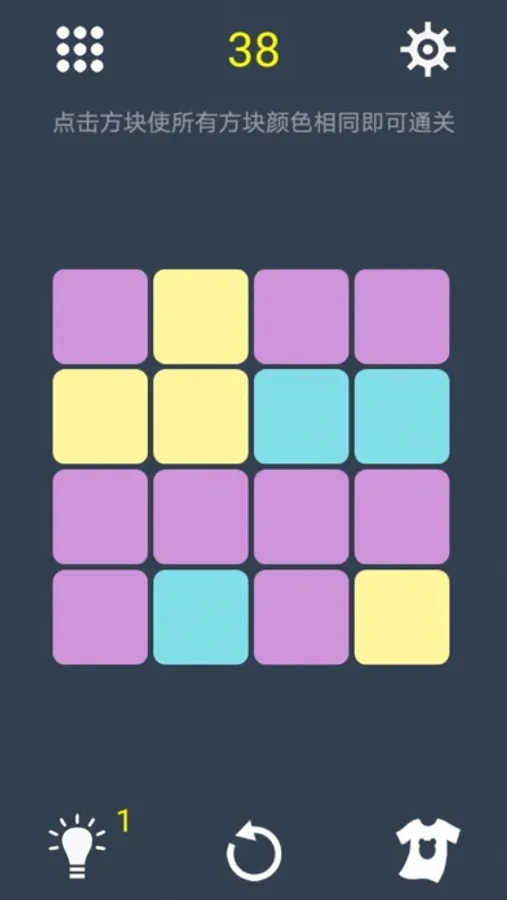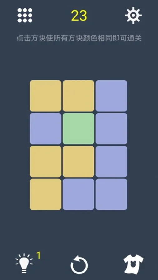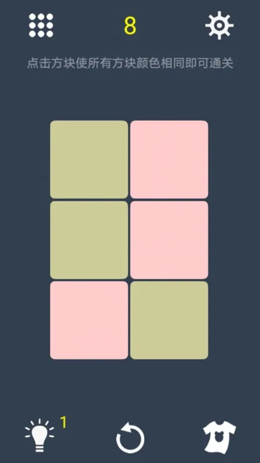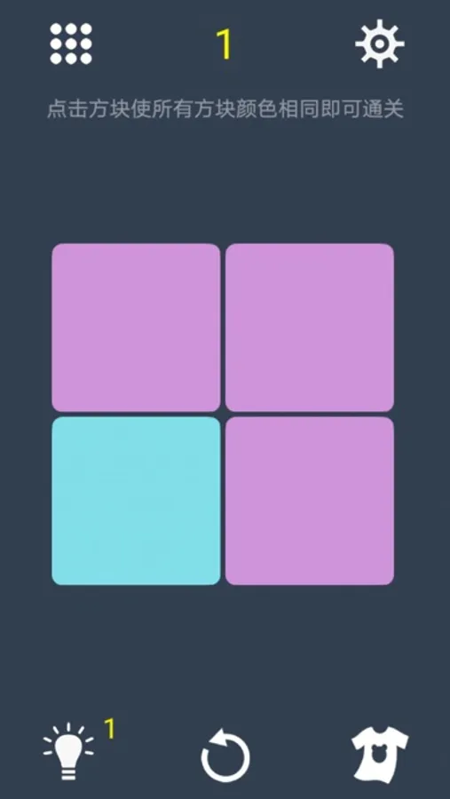 点击方块,可以切换方块颜色,将所有方块切换为相同颜色即可通关,听起来是不是特别简单?但是并不简单,因为方块与其它的方块具有某种神秘的关系,这种关系每一关都不一样,却存在某种规律。另外,为了增加游戏的丰富度,每次点击都会触发一个钢琴音符,不断连续的点击即可听到动听的钢琴音乐!