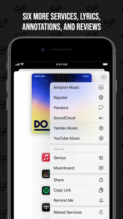 When exploring a song, you can easily access additional information like lyrics with annotations on Genius and reviews on Musicboard.
