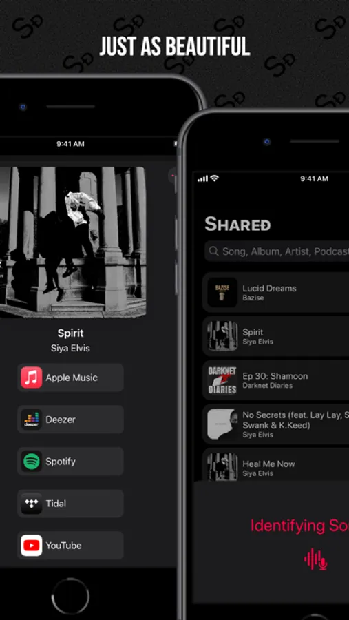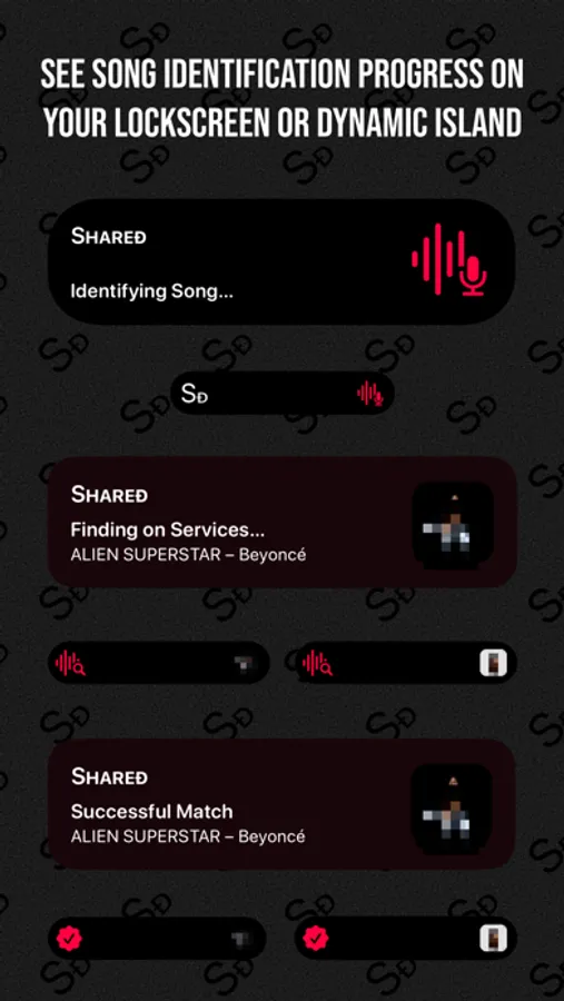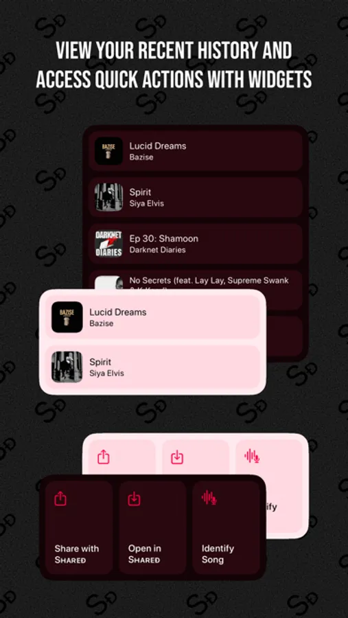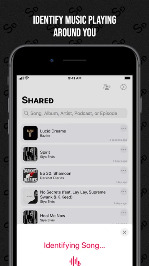What's that song? Shared can also identify songs playing around you, even if it's from another app on your device. You can then conveniently open the identified song in the service of your choice. Furthermore, from iOS 16.1, you can keep track of the song identification progress through a Live Activity displayed on your Lock Screen or Dynamic Island.