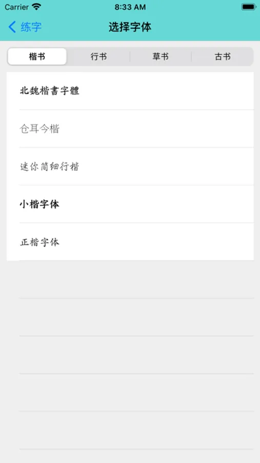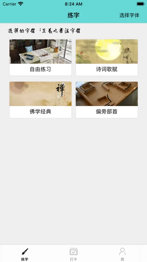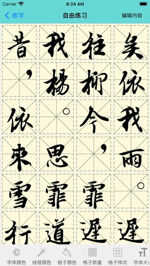 可以生成字帖的工具,输入文字即可生成多种字体的行书楷书字帖,内置古诗词。