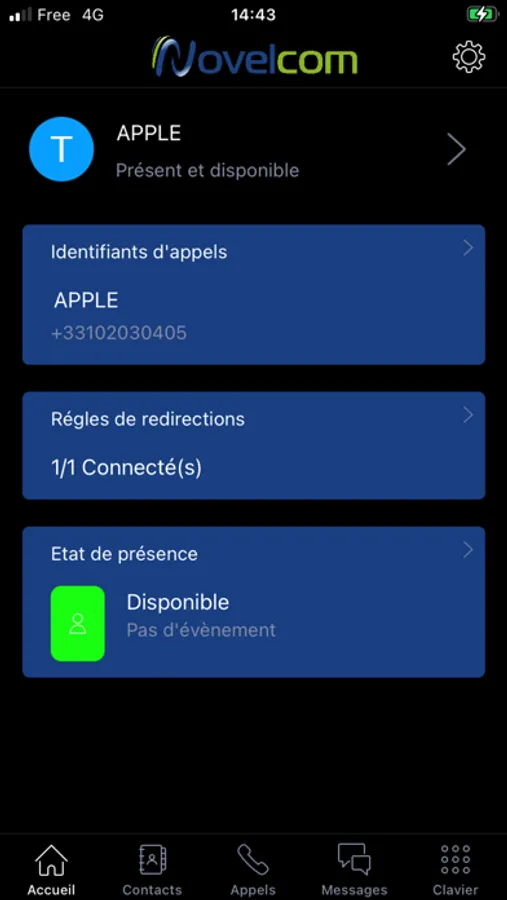 Cette application nécessite une souscription au service téléphonique de NOVELCOM.