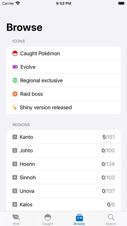 - Indicators for which Pokemon have a shiny version released and the ability to track them.