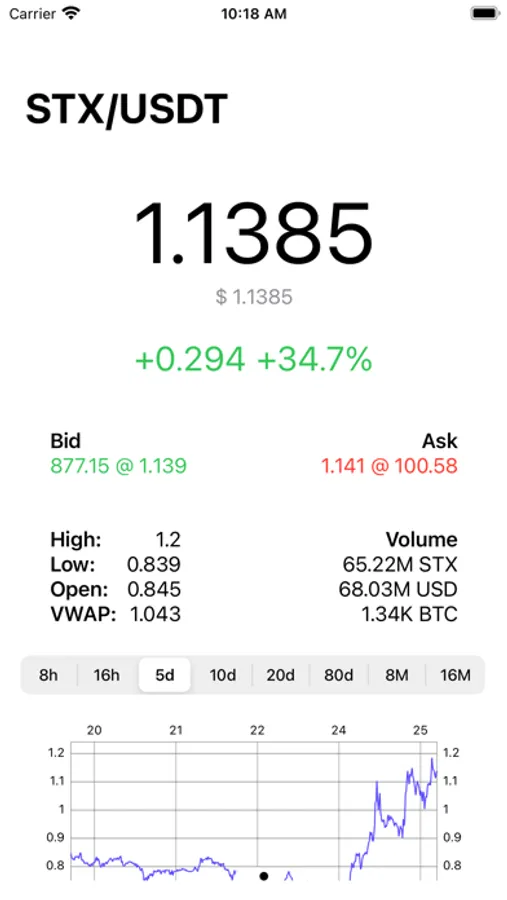 NIL Stacks App shows the health of the STX ecosystem with both USD and BTC price tickers and convenient widgets for your home screen.