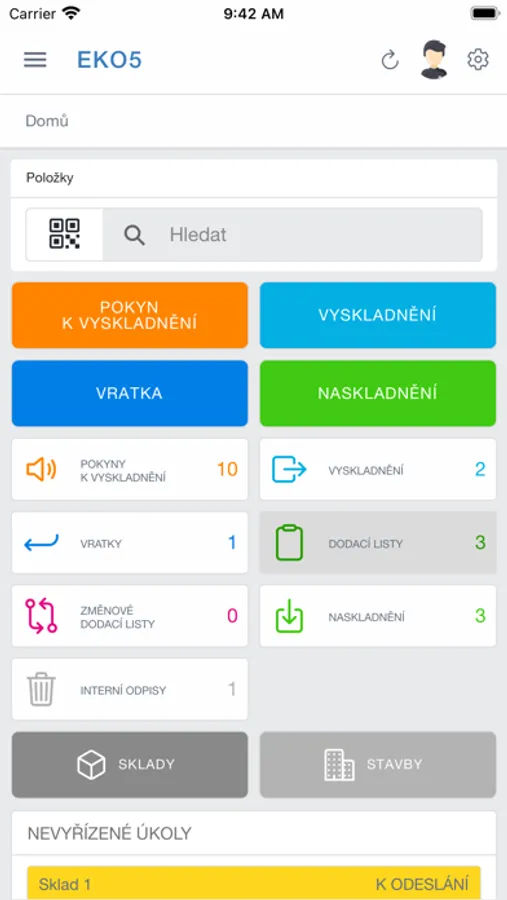 EKO5 online aplikace umožňující vnitrofiremní i mezifiremní skladové pohyby s elektronickými dodacími listy (interaktivní dodací list poskytující okamžitou zpětnou vazbu příjemce odesílateli) a využitím QR kódů (vyhledávání, přidávání položek do skladových pohybů, potvrzování položek ve skladových pohybech a dodacích listech). Důkladná evidence majetku firmy včetně hlídače servisních prohlídek nebo revizí. Finanční reporty spotřeby jednotlivých staveb/zakázek, rozpočtová kontrola v reálném čase. Jasné vymezení kompetencí uživatelů - snadný dohled, pomáhá odstranit procesní chyby, nástroj vnitrofiremní i mezifiremní komunikace. Individuální konfigurovatelnost (uživatelské role a oprávnění na míru, zapínatelné funkční moduly).