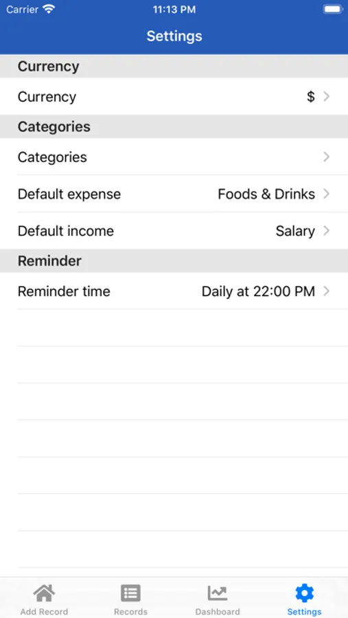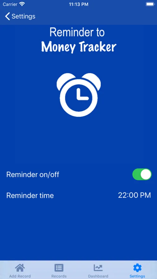 * Reminder helps you to member tracking your money and review your financial status everyday