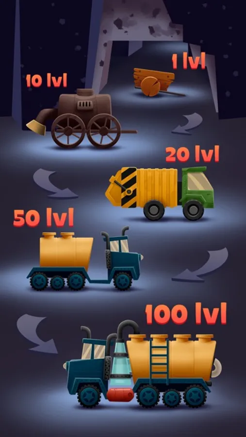 Once you get that taste and upgrade your compactor and container — move to a higher level to discover new horizons. Start clearing out the dirtiest places on our planet. And in case you get bored — this Trash2Cash simulator game has lots of exciting branches. For instance, you can carry out archaeological excavations in the mine, explore and invent new equipment in the Laboratory, make details to upgrade compactors in the Forge, fight for the best lots with a lot of cash in the Auction and much more. But the main offshoot will be the Racing World — the Garbage Truck Races, to be exact. You will be able to collect your first racing truck from trash and rush into the elite of this scavenger sports world.