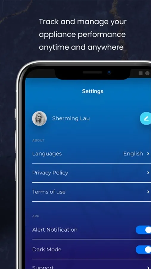 Track and manage your appliance performance anytime and anywhere through mobile app and web platform