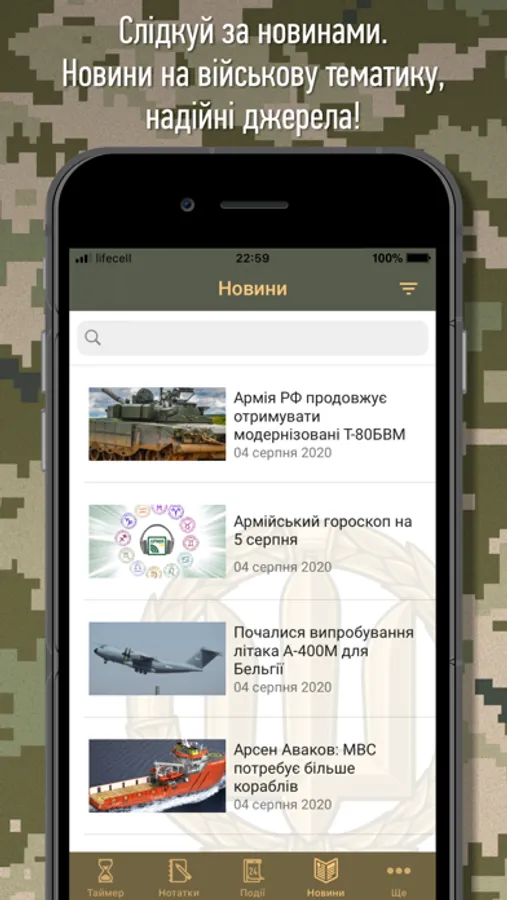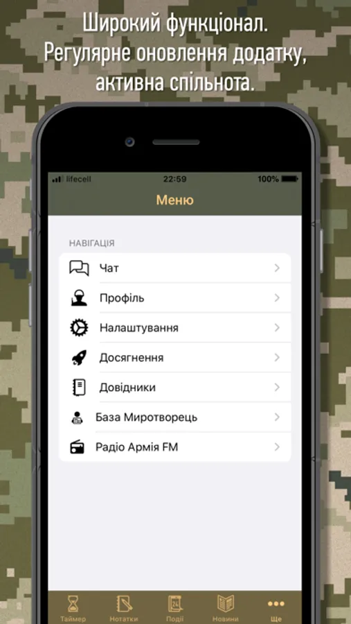 Програма має тематичні оформлення, які найкраще підійдуть до твого роду військ, національної гвардій чи прикордонної служби.