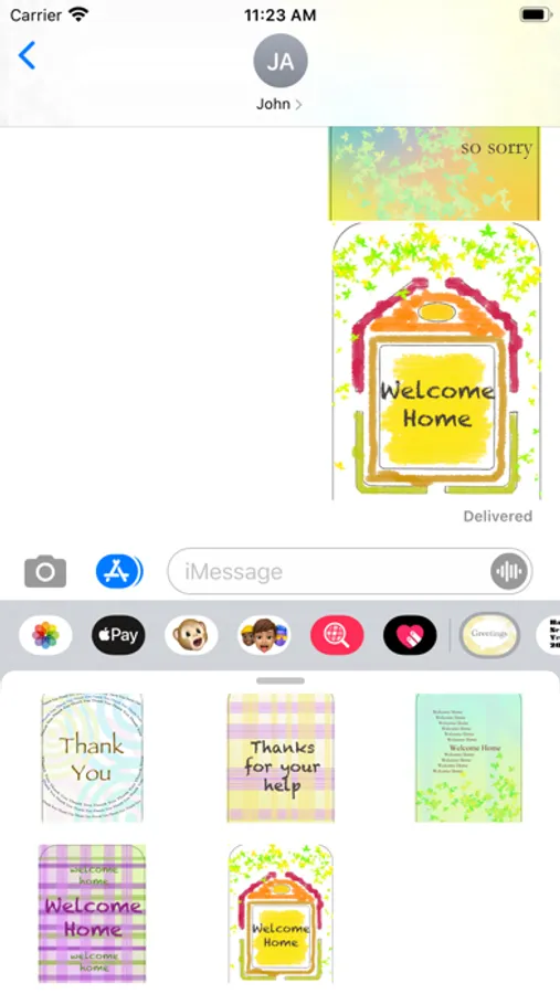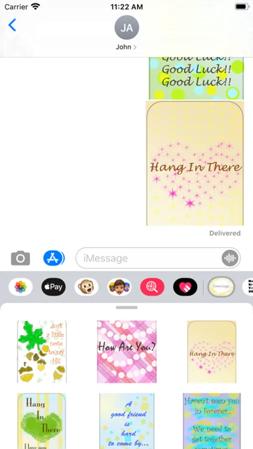- to apply stickers on messages, select the sticker by tapping on it, then drag and drop the sticker on to the message.