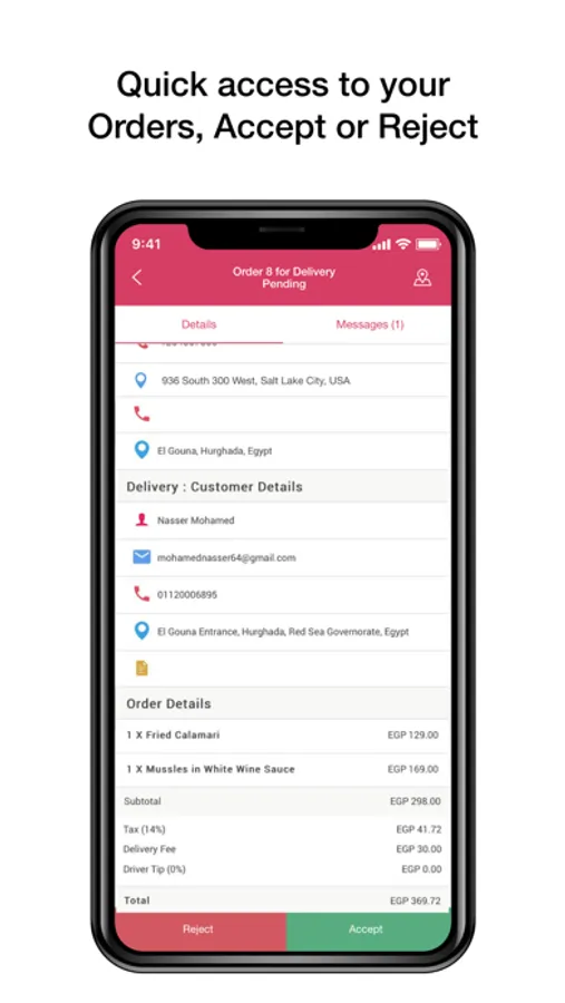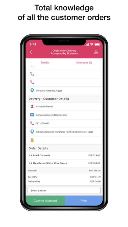After the customer places the order from your business, you will receive a notification on your phone through the app. You will see all the relevant order information such as customer name, phone number and address for delivery.