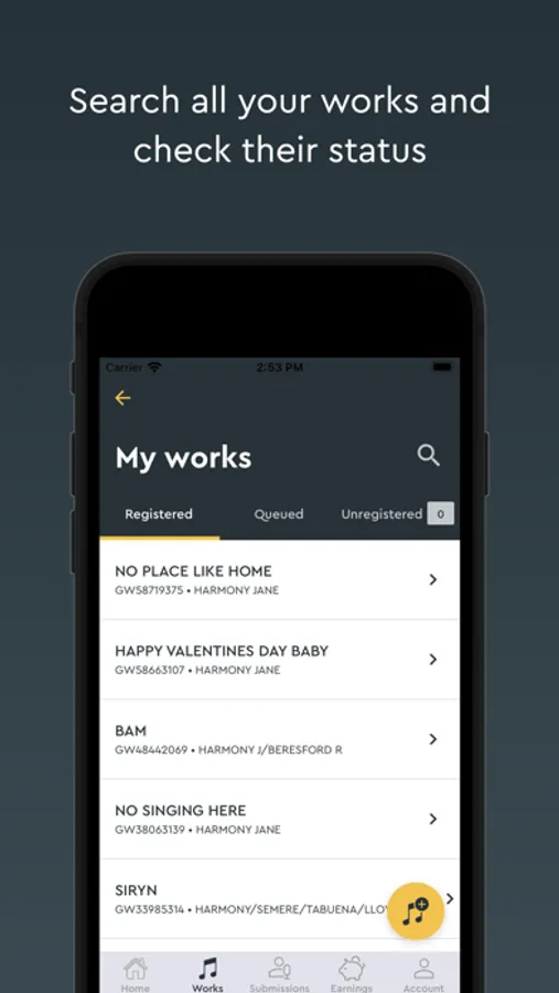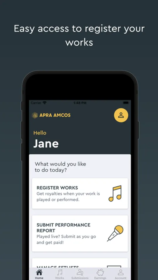 - Easily register your works, so you can earn royalties when your work is played or performed