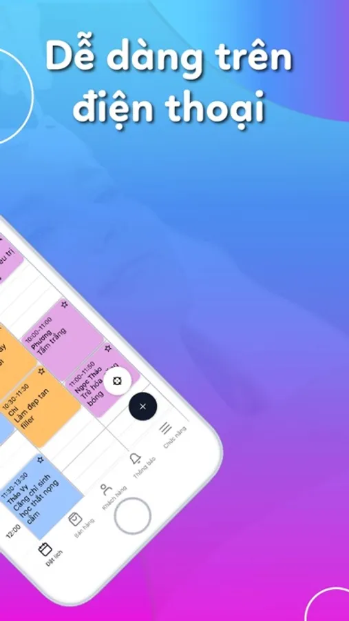 Chỉ với vài thao tác chạm là bạn đã có thể tạo xong 1 lịch hẹn. Hệ thống sẽ tự động nhắc hẹn khách hàng, thông báo có lịch hẹn mới cho kỹ thuật viên, người quản lý và tính hoa hồng cho nhân viên.