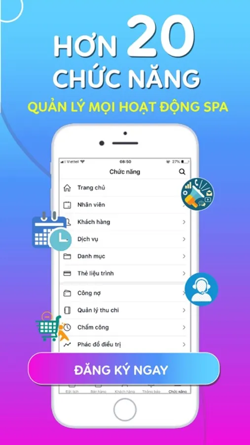 Ngoài ra SPAGO cũng giúp bạn quản lý tồn kho, chi phí, công nợ, chấm công, tính lương, survey khách hàng, quản lý dịch vụ, sản phẩm, chi nhánh...