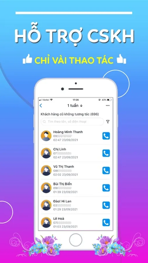 Dịch vụ: hệ thống sẽ tự động gửi tin nhắn CSKH sau 1 khoảng thời gian làm đến làm dịch vụ