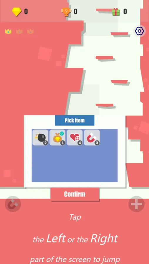 There are many items to help jump as high as possible. They will appear along the way and remember to pick them up.