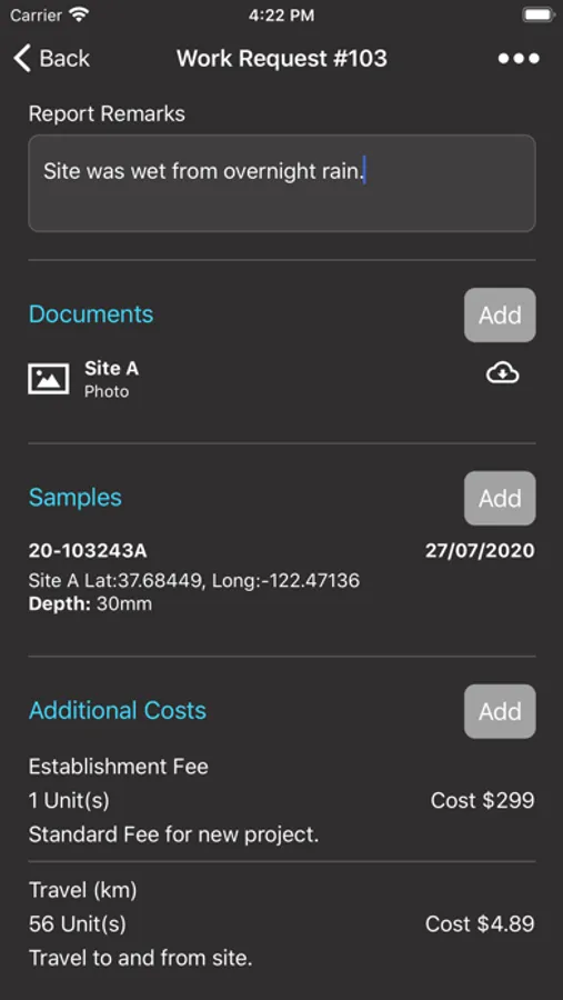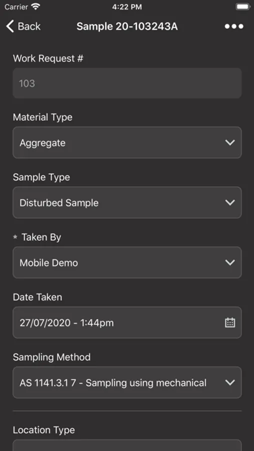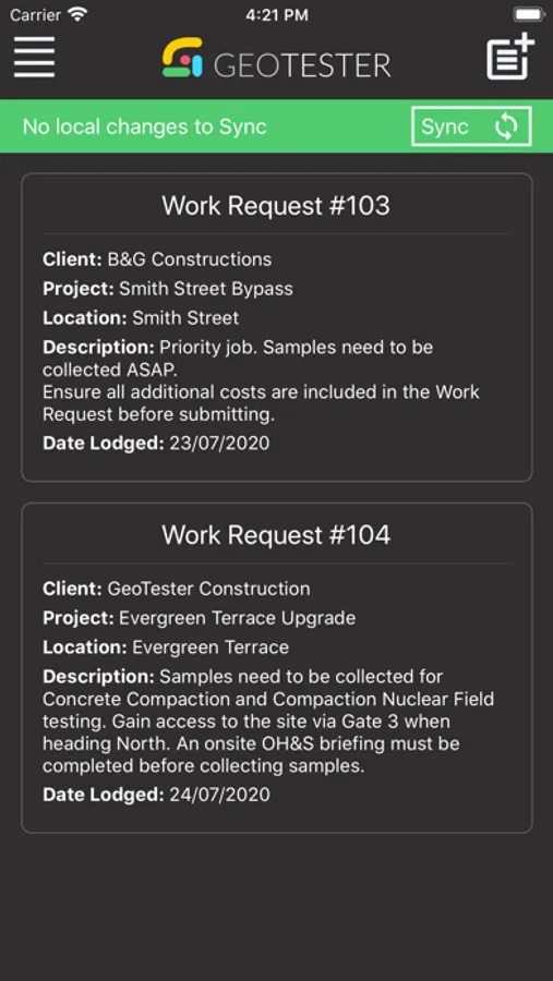 For use with the GeoTester LIMS to log collection of samples and field testing results offline and then send to the server for laboratory testing and reporting.