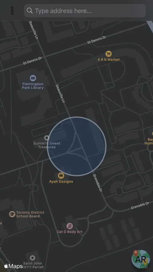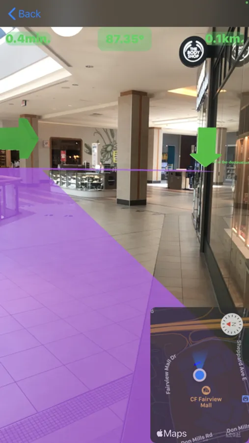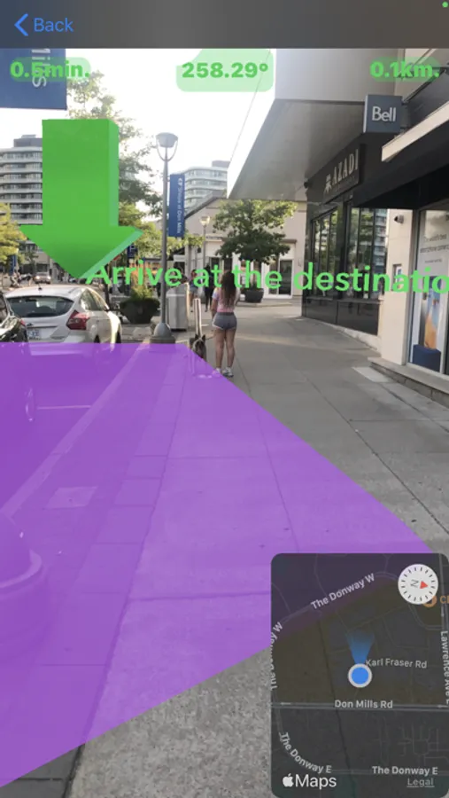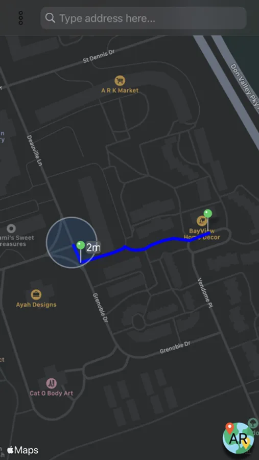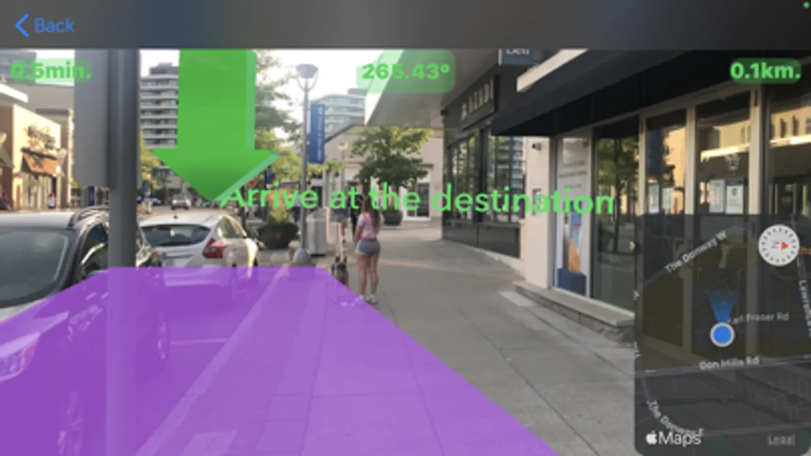 All the user needs to do is press on a location on the map or type an address within a 10 mile radius from the users location, then the shortest walking path to the location will be displayed, press on the button label AR on the right bottom corner of the map and it'll take you to the AR View, the path will then automatically be render for you.