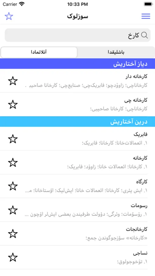 با امکان ستاره دار کردن لغات، مرور آنها و جستجو