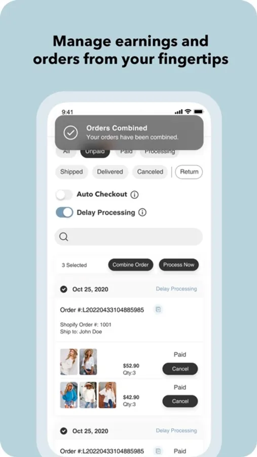 With zero inventory overhead, Trendsi removes the risk and hassle of inventory management and unsold products. You’re only charged when you make a sale, and there’s no need for you to store your own inventory.
