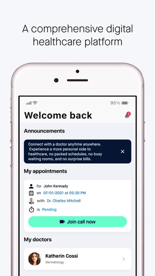 Patients can download the app and register an account for free. Easily find your doctor's office to link to your account, and conduct live video visits from the comfort of your home, work, or on the go.