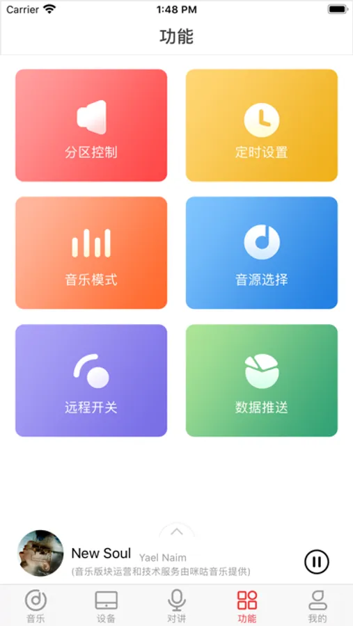 华尔思智能最新APP3.0版本,可以实现外网控制,加入了曲迈主机组网,对讲以及分区播放不同音乐控制,并可以实现问题反馈和OTA升级,自带音乐曲库并可以实现云分享功能!