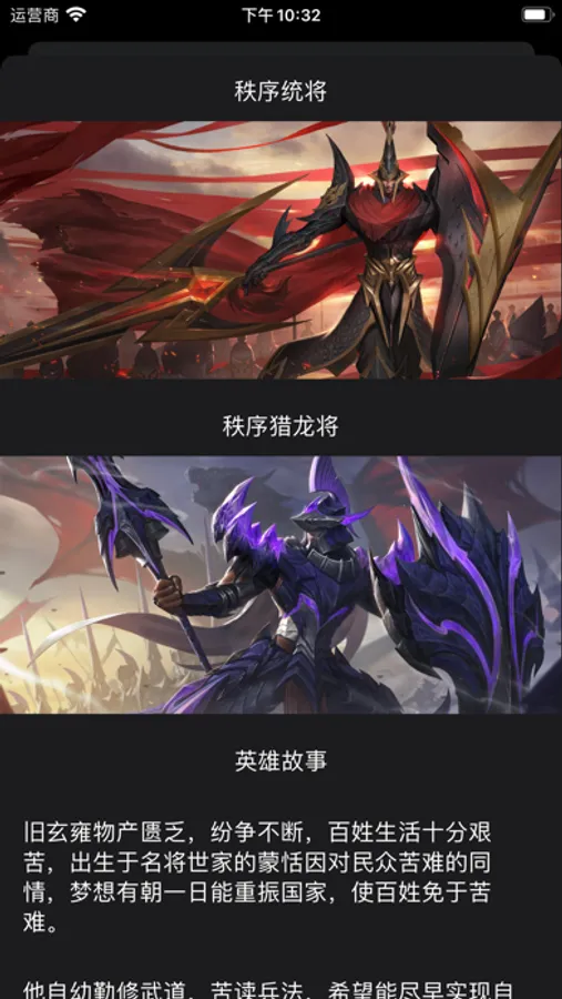 本应用程序包含 游戏的所有英雄,道具,召唤师技能,铭文的详细资料。