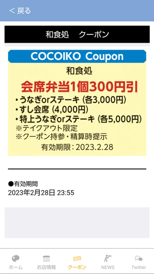 ∟掲載しているお店の、お得なクーポンを配信します。期限が短いものもありますので、お見逃しなく!