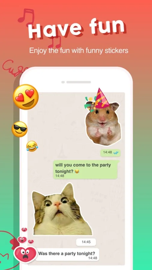 Enjoy the Fun: Create funny stickers or choose from the ready ones. Share and have fun.