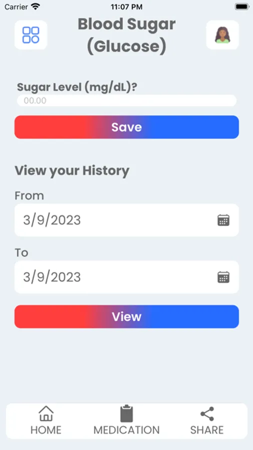 - Vital Signs: you can record all vital signs such as fever, blood pressure, sugar level. And if you are taking any med for the episode, the list will be presented for you to choose from and then save to your profile.